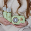 Привабливий ретро-дизайн робить колонку чудовим подарунком як для дорослих, так і для дітей. Потужний динамік гарантує чистий та насичений звук, а вбудовані мікрофони дозволяють співати або використовувати пристрій як гарнітуру.